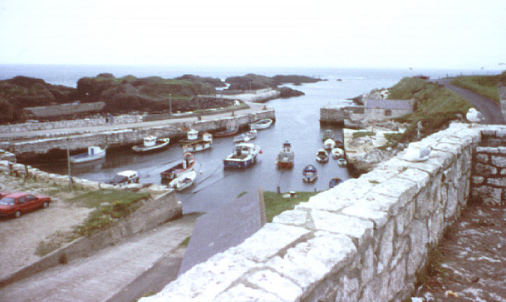 Antrim coast, Northern Ireland. Summer 1988. The harbour at Ballintoy.
