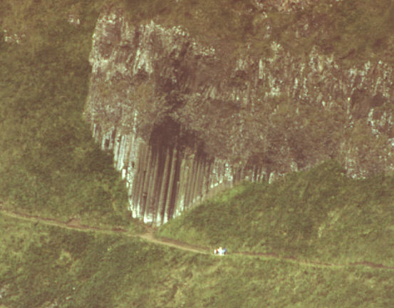 Antrim coast, Northern Ireland. Summer 1988. 'The Organ' near the Giant's Causeway.
