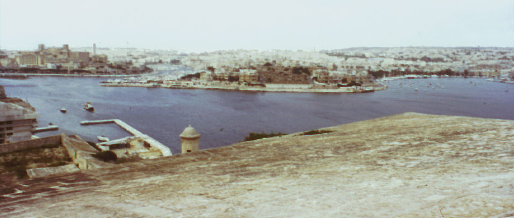 Valletta, Malta. Summer 1996. View north-west from St. Michael's Bastion over Marsamxett Harbour.