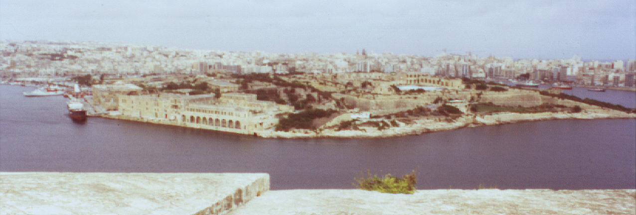 Valletta, Malta. Summer 1996. View north from St. Michael's Bastion towards Manoel Island.