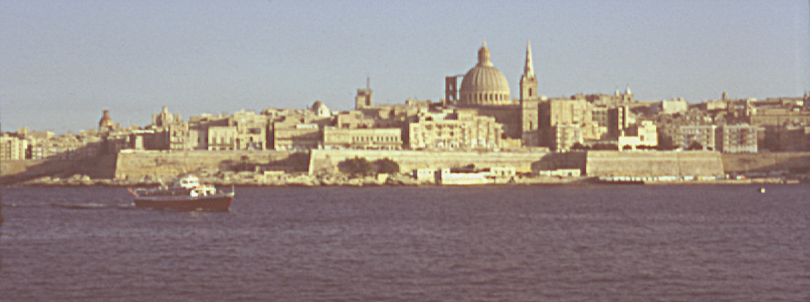 Valletta, Malta. Summer 1996. Panorama of the city, looking south from Sliema.
